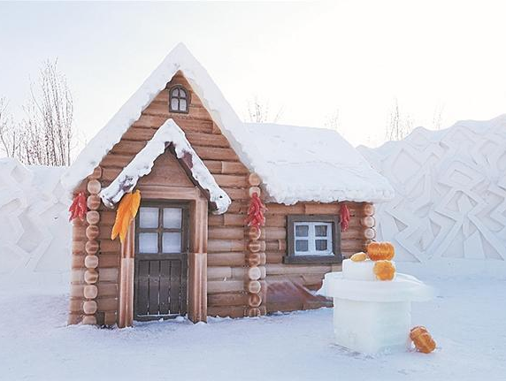 哈尔滨冰雪大世界 雕出仿真玉米南瓜