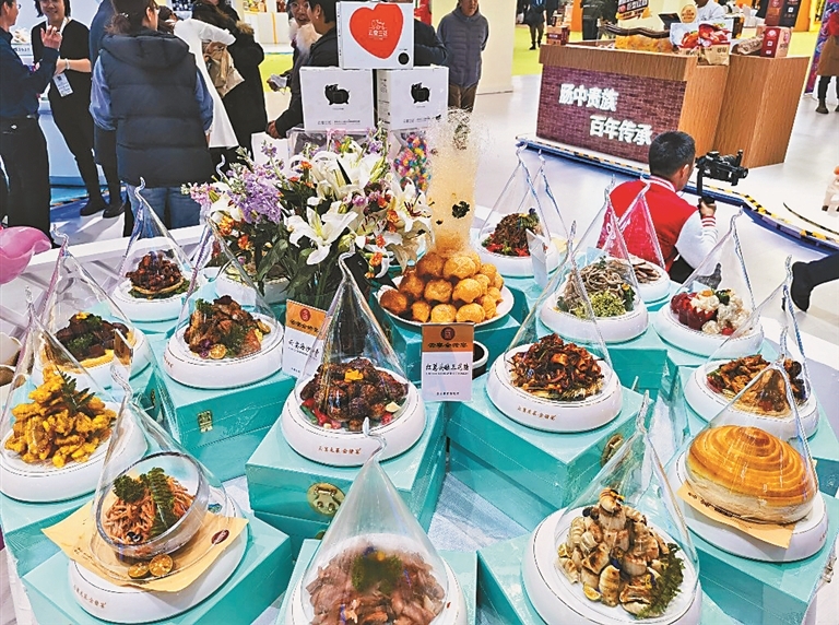 在B区的哈尔滨展厅,一处风格清新的展区内逛展者络绎不绝,大家纷纷驻足观看,品尝,最后拎着大包小裹离开的不在少数。从展区的色调和一个摆放的黄色玉米造型的大玩偶不难猜到,这里的展品一定是以玉米为主。
