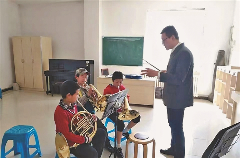 大学期间,商浩连续4年跟随共青团吉林艺术学院委员会去吉林省孤儿学校进行支教,这是让商浩感到最开心、最骄傲的日子。“我们几乎每两周去一次,和孩子们一起演奏音乐、排练节目,那种感觉真是特别美好。”商浩第一年去的时候,教孩子们练习基本功,与其他人合奏。“刚开始的时候,我还有点不知道怎么去跟他们讲音乐的事情,后来,我就想着用音乐的方式和孩子们拉近距离,通过欢快的音乐节奏和孩子找到共同语言,慢慢地孩子们开始接受我,并愿意和我交流,我既像他们的老师,又像哥哥。有时候,遇见他们不理解的情况,我会在教室的黑板上给孩子们画一些图片,细致到摆每一个拍子、每一个音符的位置。”
