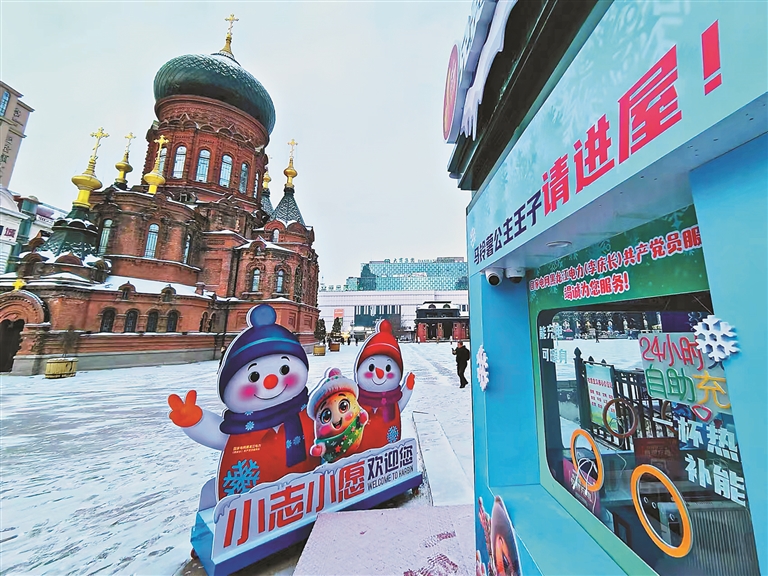 13日晚,记者看到,在索菲亚教堂景区的一角,一座印有“用电@他好使”爱心标识的电力“能量小站”颇为引人注目。一名在此拍照的游客进入电力公司工作人员的视野,对方正为手机缺电无法拍照而犯愁。“公主请充电。”电力公司职工於炜人热情邀她来驿站,递过来一根充电线,并细心地为手机贴上一层热贴。“我从广东来,飞机刚一落地就到这里拍照,雪后索菲亚教堂景区就像童话世界,还没拍尽兴手机就冻没电了,你们的服务真的太赞了。”游客说。