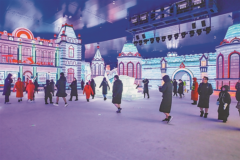 冰雪大世界公司严格的项目质量管理也赢得了多个荣誉,近日,公司被国家商务部、中央宣传部、文化和旅游部、广电总局共同评审认定为“2025-2026年度国家文化出口重点企业”;梦幻冰雪馆荣获了携程集团“2025旅游创新贡献奖”。对此,工程管理部部长庞志国对记者说,“我们馆内冰雪景观及时更新调整,所有冰建工程,从冰料筛选到施工工艺,都实施严格的全流程质量管控。”该馆是吉尼斯世界纪录认证的“最大室内冰雪主题乐园”。所用的冰材是冬季采自松花江的存冰。它的存在,让国内外游客在盛夏啤酒节期间圆了看冰雪的梦。