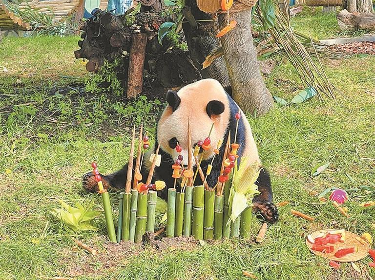 工作人员告诉记者,丰容是一种动物园术语,是指为满足圈养动物生理、心理需求,丰富其生活内容,展示其自然行为而采取的系列措施。丰容就像是一种“趣味升级计划”。通过模拟大熊猫在野外的生存环境、行为模式,为它们提供多样化的生活空间、活动设施和互动机会,打破单调的圈养生活,让大熊猫的身心都能保持健康活跃的状态。
