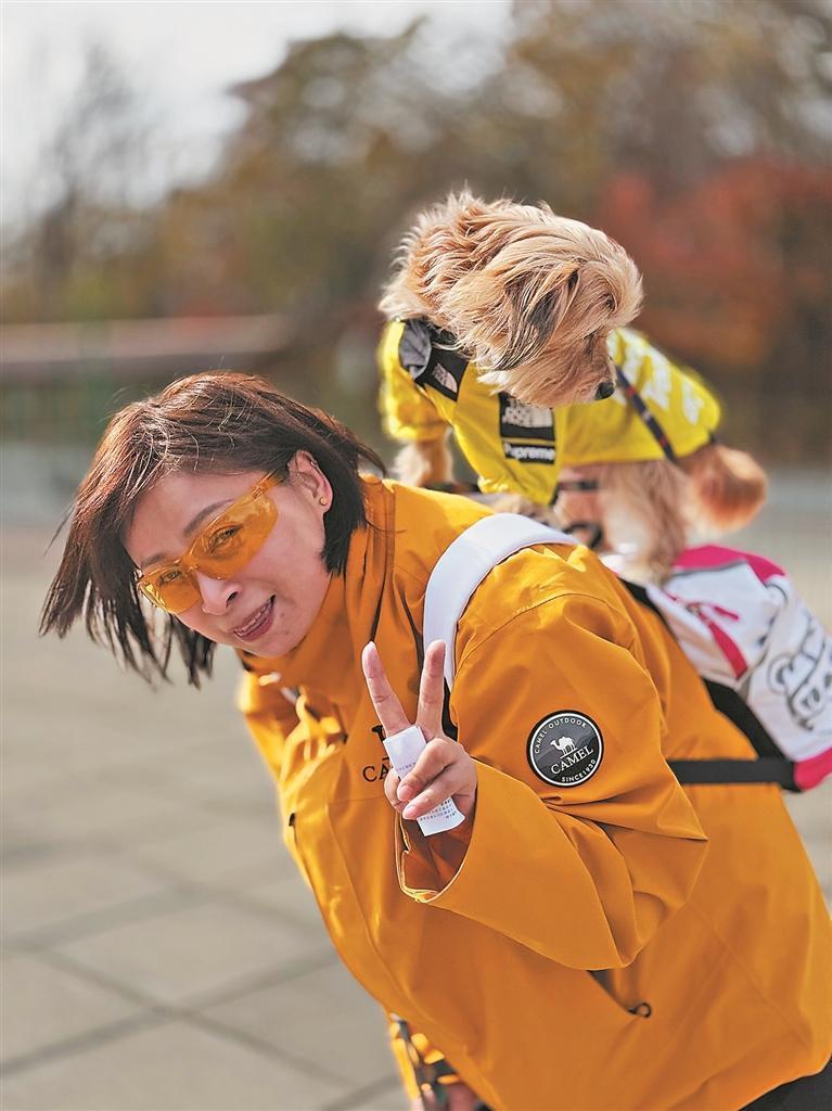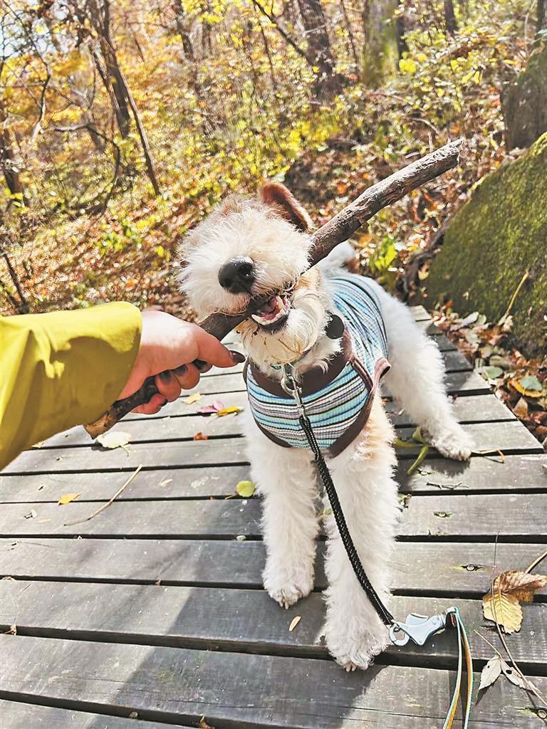 活动现场,记者遇到了带着爱犬“八一”前来参加活动的张女士。这只两岁半的阿富汗猎犬正兴奋地摇着尾巴,在落叶堆里欢快地打滚。“‘八一’是我当年花2000元领养回来的,刚领养时身体状况不好,但在我们全家的精心照料下,现在已经成为一只健康活泼的小家伙了。”看着“八一”与其他狗狗愉快地互动,张女士欣慰地说:“今天能带它来参加这样的登山活动,心情特别好。感谢组织者提供了这么难得的机会,让狗狗们能在这么美的自然环境里尽情奔跑。”