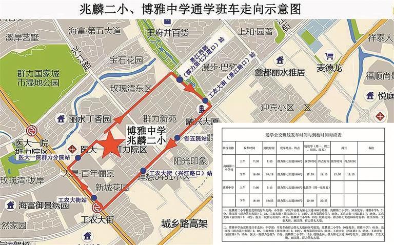通学1号线创新采用“一线服务两校”的模式,淞南中学方向6:50从中海时代公馆始发,途经民生尚都片区各小区;淞南小学方向7:30从阳江路始发,覆盖新三中、轻工业学校等教育区域,线路根据教学日灵活调整班次,周三与其他日期发车时间各不相同。通学2号线重点服务实验小学和经纬中学,全天发车6趟,充分满足住校学生周末往返需求,线路连接兴江路、群力第四大道等主要道路,方便盛和世纪等多个小区学生乘车。新开通的3号线采用环线运营,同步服务兆麟第二小学和博雅中学,线路早间自群力第七大道始发,途经景江西路、工农大街等主干道,设8个站点,覆盖群力第七大道周边核心区域。