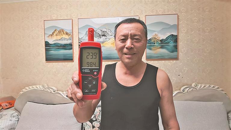 15日下午,哈尔滨气温骤降,室外温度已有了冬天的感觉,然而,当记者走进绿海华庭小区三期10号楼3单元701室占先生家时,一股暖流扑面而来。负责该小区供热工作的珠江物业工作人员对占先生家的室温进行了实时监测,结果显示:温度为23.9℃。占先生穿着背心和单薄的睡裤高兴地告诉记者:“我们小区提前供热了,你看我穿这么少,在家一点儿都不冷,可舒服了。”随后,记者跟随珠江物业的工作人员又随机走访了该小区2号楼3单元1401室、3号楼3单元604室等多户居民家,测温结果显示:温度均已达到20℃以上。在珠江物业的热源车间,机器轰鸣,锅炉正在运转,工作人员时刻监控着仪表盘上的数据。该公司总工程师陈大威介绍,“哈尔滨秋季的气温说变就变,为了让居民住上暖屋子,12日就开始给居民家送热了。”