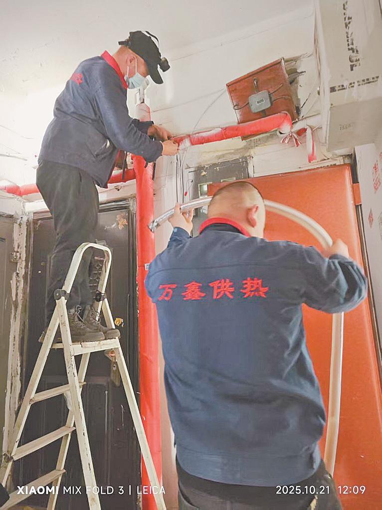 随后,李师傅搬来梯子,爬上客厅暖气片顶部,拧开排气阀,“噗嗤”一声,白色的雾气夹杂着水流喷涌而出。“得先把管里的空气彻底排干净。”李师傅一边调整阀门开度,一边观察水流变化,时不时用手触摸暖气片感受温度。过了一会儿,水流逐渐平稳,暖气片也逐渐升温。“真热了,太感谢了!”王先生伸手摸着暖气片,脸上露出了笑容。经过近半小时的维修,李师傅再次用测温仪测量,王先生家室温已升至20℃。“多亏了生活报供热帮办的帮助,师傅上门又快又专业,半小时就解决了大问题,真是太负责了!”王先生对生活报记者和万鑫供热公司表达了感谢。