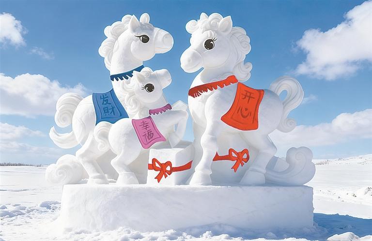 记者注意到,当天最低气温-21℃左右。“童话小马一家”现场雕刻负责人张宁阁告诉记者,这样的天气条件给雪雕施工带来了利好,温度越低,他们雕刻的雪雕越细腻,效果越好。