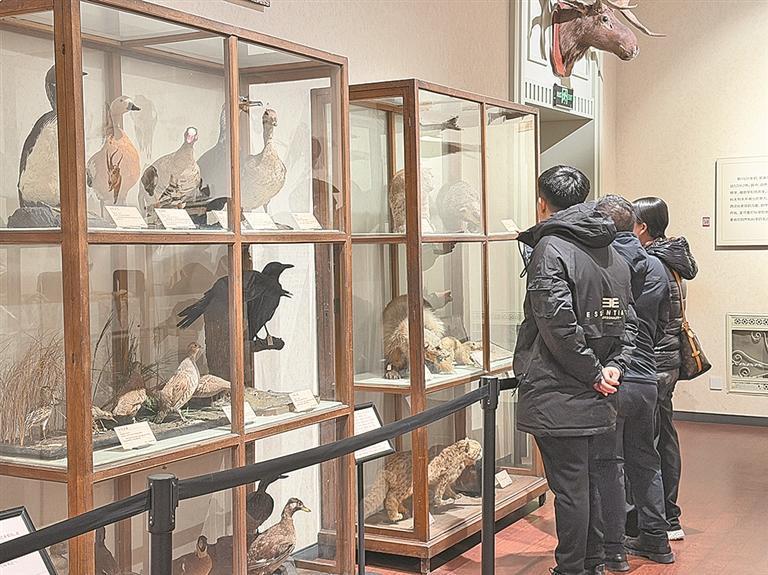 采访中,黑龙江省博物馆自然研究部主任杨秀娟介绍,目前馆内展出的这些标本只是馆藏的“冰山一角”,现收藏于省博内的自然类标本有13万余件,大部分都有着百岁高龄。其中,尤为吸引人的东北虎皮标本制作于1928年,它是一具成年东北虎,体长近3米。“未来,我们将继续挖掘百年标本的文化和科研价值,推出更多创新展陈形式,让这些跨越世纪的动物们持续发声,为冰雪季的龙江文旅增添更多内涵与活力。”