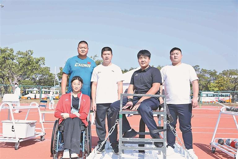 18岁的兰妍雨馨与17岁的闫博是队伍里的“青春担当”,更是刻苦训练的典范。童年时的一次下腰训练意外,让兰妍雨馨脊髓损伤导致双下肢残疾。曾经的迷茫与无助,在她加入哈尔滨后备集训队后烟消云散。最初接触铅球时,连举起铅球都格外吃力,但她没有退缩,每天天不亮就出现在训练场,对着投掷动作视频反复琢磨,上肢力量训练从举轻物开始,一点点加码。半年时间里,她的投掷距离提升了近两米,这一进步是用无数次的重复练习与坚持换来的。