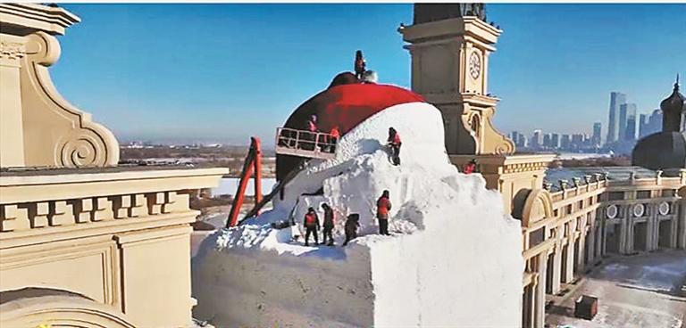 生活报讯 (实习生李彤 记者黄迎峰 文/摄) 记者11日从哈市道里区了解到,备受市民游客期待的“网红大雪人”,目前正在紧锣密鼓地施工中。